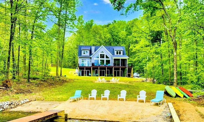 - Lakefront with 120' Beach, Views, Wifi @ Lake Anna