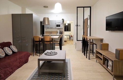 Located in Lyon, this 2-bedroom, 1-bathroom apartment lets you experience it all. Fans of nature and the outdoors will love being 8 minutes by car from Tête d'Or Park and 19 minutes from Pilat Regional Natural Park. Lumière Museum is an easy 10-minute walk away and Maison de la Danse is also a quick 8-minute walk away. Check out other neighborhoods and see more of Lyon by hopping on a metro at either Villon Tram Stop or Bachut - Mairie du 8eme Tram Stop, both just 5 minutes away by foot.
