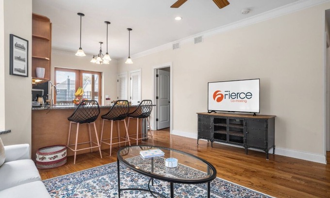 2BR/1BA, full kitchen, fast Wi-Fi, on-site laundry, and great location near public transit and shops.