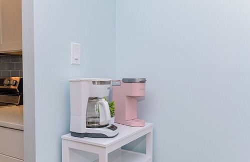 This is a huge condo that has had a 100% complete and modernized update throughout including but not limited to: kitchen, walls, floors, appliances, furniture and all new beds and mattresses too. Does have a Keurig coffee pot and another coffee pot that can make up to 12 cups at the same time.