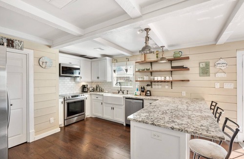 This home is well stocked starting with a kitchen that has just about everything you need to prepare and enjoy meals. Just bring your favorite ingredients! All beds are made prior to your arrival with clean sheets. Freshly laundered hand towels, bath towels, and beach towels are provided. We also provide a starter kit of paper products intended to make your first day comfortable but you will need to plan on purchasing supplies on your way to the home or after your arrival.