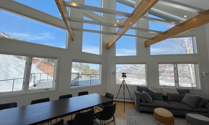 This newly listed modern chalet home is perched high above the Animas Valley. Enjoy some of the best views in Durango, multiple hiking trails nearby, and numerous wildlife that pass by or fly over the property. This unique location allows you to feel like you are far from town, amidst the forest, red cliffs, with the option to watch the valley happenings below - including the Durango Silverton Narrow Gauge Train and the North Pole in November/December. We are just 10 minutes to downtown Durango, 25 minutes to the lifts at Purgatory, and down the road from Durango Hot Springs ~ 4 miles. Although, you can also enjoy a soak in the hot tub located on the expansive deck. This is a perfect location to relax and recharge while having easy access to all of the sights and activities of the Durango Area and the breathtaking San Juan Mountains.