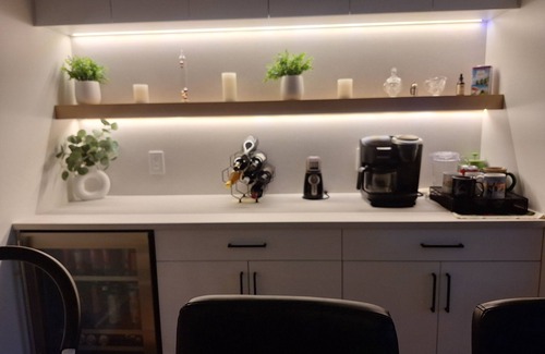 Other features include a garage with a Level 2 charger for an EV, a new fold-out cot or a full reclining sofa for a child or additional adult, a Weber gas barbeque, a hot tub, an exercise area, and five heat pumps in all the living spaces to maintain the perfect temperature. Our immaculate home is set up to create a truly memorable Kelowna vacation for you and your loved ones.