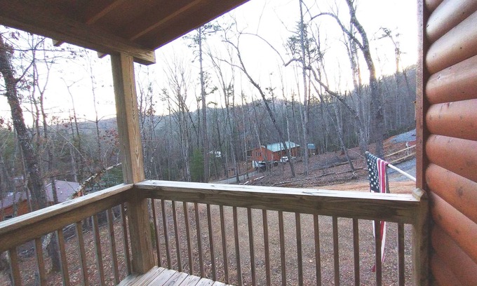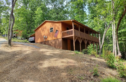 NEW LISTING! 10% Discount! Lowest rate in the area. Welcome to the "Mountain Cabin Getaway!" with only a 2-day minimum. 10% DISCOUNT for weekly bookings, also. Two dogs welcome of any size! It is a cabin with 2 master suites and 2 full baths, one on each side and a large living room with adjoining kitchen and dining room in the center of the house with a gas fireplace and a bar. High-speed fiber optic just hooked up, Dish Network on all 3 TV's. Dedicated work desk for working from "home." You can use your cell phone through the WiFi by just changing your phone settings to make and receive calls through the WiFi, which works like a charm for us if your carrier isn't as good in the mountains. Murphy is a wonderful mountain town nestled between Blue Ridge, Blairsville and Helen, GA which are all within 30 minutes to an hour away. You can even do Gatlinburg or Pigeon Forge, TN for a day trip and we are less than 20 minutes from where the Tennessee and Georgia state lines meet at the quaint shopping and dining village on the Toccoa River where you can cross from Copperhill, TN into McCayesville, GA within a few steps on Bridge St. We are also within 20 minutes of Harrah's Valley River Casino, and too many Appalachian hiking trails and rafting locations to list. There are many lakes surrounding the area and nature abounds with deer coming out to graze in the grass and say welcome to Murphy! After a fun day you can sit around the fire pit and enjoy a bottle of complimentary wine from our bar.