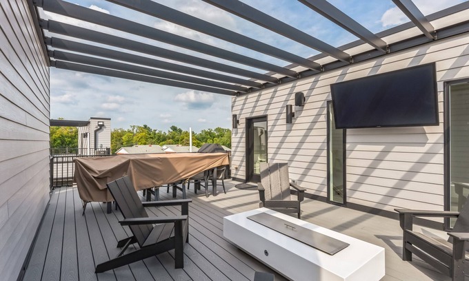 NEW LISTING! New Modern Townhome with Rooftop Patio by RedAwning is located in Iowa City. NEW LISTING! New Modern Townhome with Rooftop Patio by RedAwning provides accommodation, featuring Kitchen, TV, Security/Safety, among other amenities. This House features Kitchen, TV, Security/Safety, to make your stay a comfortable one.
