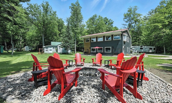 Wake up to misty lake views, toast marshmallows over the fire pit, and unwind in style at this fully remodeled 5-bedroom retreat-perfect for families and friend getaways alike. With 5 bedrooms, 3 full bathrooms, and ample gathering space across two floors, this spacious home was thoughtfully designed to host up to 14 guests in style. During the day, explore the 400+ acres of Chute Pond and in the evening watch the sunset with friends and around the firepit. Your vacation awaits!