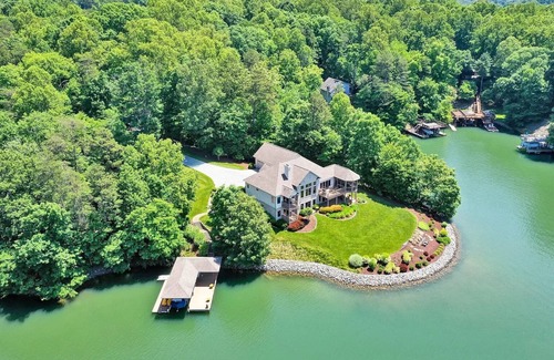 The chef's kitchen is stocked, the propane grill is ready for a cookout on the deck, the beds are comfortable, and the house offers ample space for members of large groups to have their own sense of space. The screened porch, deck and patio are all well furnished for morning coffee or evening cocktails, and the panoramic views of the lake are simply stunning! Unwind around the fire pit or indoor fireplaces as you take in the serene surroundings.