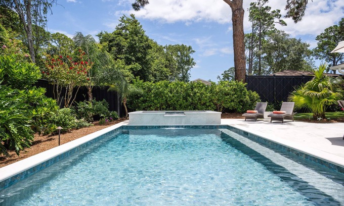 New Listing! Stunning Tropical Mid-Island Retreat with Private Pool, Spa & Backyard Oasis | House in Saint Simons Island