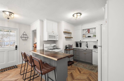 • A fully equipped kitchen with a gas range, dishwasher, full-size refrigerator, microwave, toaster, blender, and drip coffee maker and Keurig.