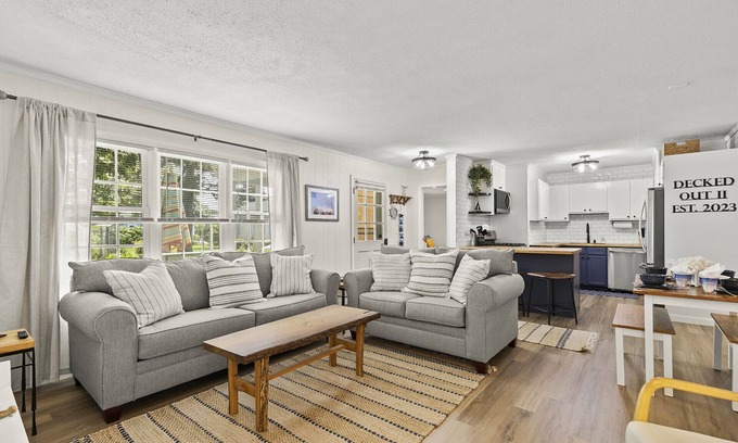 Charming Outdoor Spaces: With a front patio and a large side deck furnished with seating and a BBQ grill, the outdoor areas are perfect for cocktail hours or casual gatherings under the stars.