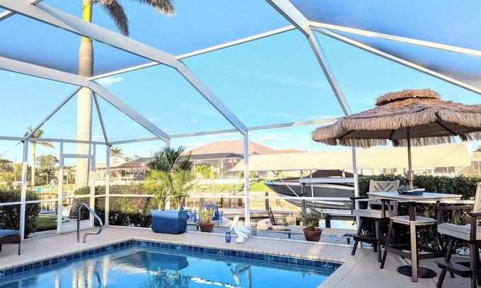 - Short Distance From Tarpon Point Marina! Gulf Access, Heated Pool, Dock & Tiki!