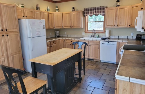 High Def TV, Satellite with Dish Network w/movie channels, DVD library, gas log fireplace (Oct 1st til May 1st), fully equipped kitchen, patio dining furniture, Chargriller, and outdoor swing set. Also downstairs a Gameroom with, pool table, SD TV with Dish Network, PS2 w/games, and board games.