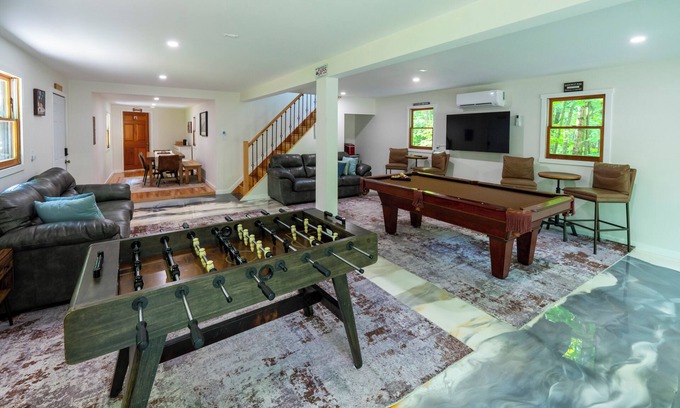 Escape to this spacious 5-bedroom home in Maine, perfect for up to 12 guests. Enjoy beautiful water views and a boat lounge less than a minute away. While the property itself is not directly on the water, allows you to enjoy the beauty and tranquility of the surroundings. Relax with a pool table, foosball, a fully equipped kitchen, and plenty of space. Close to local attractions, it’s the perfect spot for a memorable getaway!