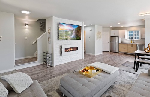 The Luxury Poolside Oasis is a classy, newly renovated condo that offers the best of Greeley and the surrounding area! Our condo sleeps 5 guests and is equipped with everything you need to enjoy a relaxing trip with plenty of space to spread out. In addition to the two bedrooms upstairs, there is a large open living & dining area, a fully equipped kitchen, and two patios on the main level. In addition, we have an office downstairs, the perfect place to work from “home” while you’re traveling.