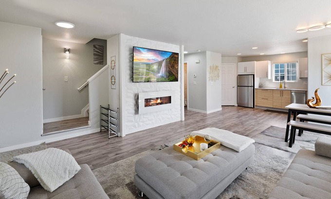This condo has so much to offer between Smart TVs in every room, you can lounge on the balcony or by the pool. There are tennis courts and a playground. Or you can enjoy sitting on the front porch that faces into the courtyard. This condo is perfectly located 10 minutes away from University of Northern Colorado and downtown Greeley. It is also right next to shopping and local restaurants. Despite being minutes away from everything Greeley has to offer it is tucked away from all the noise.