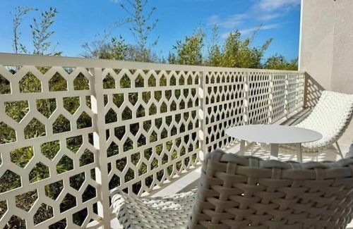 Step outside to your own private covered balcony, complete with seating and a bistro table. It's the ideal spot to enjoy your morning coffee or unwind with a glass of wine while taking in the fresh air and tranquil surroundings.