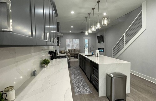 This stunning NEW CONSTRUCTION townhome boasts 4 bdrms, 4.5 baths, making it the perfect home for families or large groups. Open floor plan with modern style and comfortable living. The kitchen has stainless steel appliances and granite countertops. Private, fenced in backyard and a 2-car detached garage. Upstairs, there are 4 bdrms, each with its own en-suite bathroom. Located just steps from away from downtown, restaurants, shopping, and entertainment.