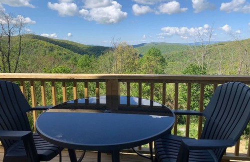Brand new luxury Chalet with the best views in Shenandoah. New appliances, fully stocked kitchen, fire pit, washer/dryer, Weber grill, Starlink high speed internet, and a large deck.