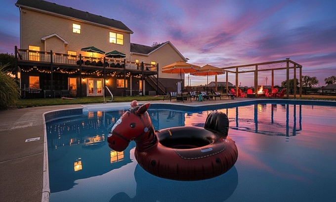 A newly renovated 6BR, 4,400 sq ft retreat in the heart of the Bourbon Trail. Set on 5 lush acres with scenic views of hills and wildlife, this home offers a heated pool, hot tub, sauna, speakeasy with poker lounge, and a fully equipped game room. Perfect for group getaways—just minutes from Kentucky’s world-famous distilleries.