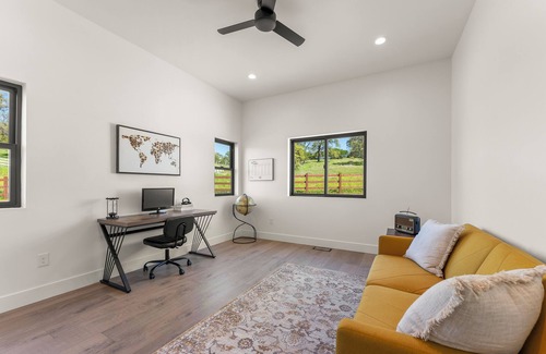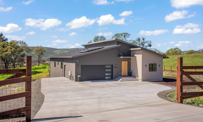 Discover the beauty of the California Gold Country from this spectacular new-construction home. This property features stunning views, an open, modern floor plan, indoor-outdoor living and walls of windows. The heart of the home features a chef’s kitchen with top-of-the-line appliances and a large island which is open to a light and bright great room. From the great room, step out to the oversized deck for barbecuing, dining or taking in the beautiful natural views and the evening sunset. The home offers several ideal gathering spots for friends and family. With over 2500 square feet of living space on one level, you will have room to spread out and enjoy the beautiful surroundings.