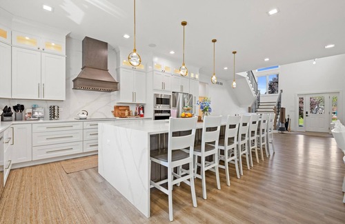 Your stay at this remarkable house is defined by an array of high-end amenities designed to cater to your every need. Enjoy relaxing moments in the hot tub or pool, or host fun-filled evenings around the outdoor fire pit while making s'mores under the stars. You will find entertainment options galore with a playroom featuring a PS5 racing simulator, a poker table, giant outdoor games, and even a waffle and crepe station stocked with delicious toppings. With fully equipped kitchens, heated floors, smart TVs in every room, and other thoughtful touches throughout, your experience will be one of comfort and luxury.