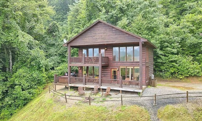 Situated on 2 acres, in the Nantahala National Forest, October Sky is the perfect getaway to disconnect and take in the breathtaking views of the Great Smoky Mountains. As soon as you pull into the gravel driveway are greeted by the large two-level cabin and the spectacular views beyond. Amenities include a hot tub, fire pit, pool table, darts, foosball, WiFi, smart TVs, etc. Nantahala Outdoor Center, whitewater rafting, & great restaurants are just a short drive away.