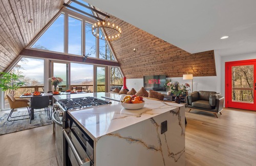 Escape to our modern A-Frame cabin nestled on 6 acres nearly 4000 feet high in the serene mountains of western North Carolina. Located between Maggie Valley and Cherokee, and just 55 minutes from downtown Asheville, our 4-bedroom retreat offers breathtaking golden-hour sunset views of the Smoky Mountains. Whether you're seeking adventure or relaxation, this luxurious cabin is the perfect base camp for both.