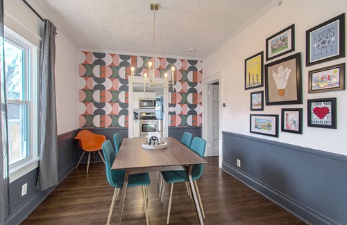 Beautifully decorated with a mid-century modern vibe throughout. The house will make you smile from the very beginning, I mean HELLO orange door, and the fun, flair and funk is carried throughout this updated Bungalow. Sleep is so very important which means you will find quality mattresses and bedding here! This house is blocks from KU Med, Westport, West Plaza and 5 mins drive to T-Mobile Center, Crossroads and many popular attractions.