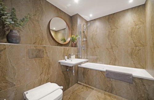 NEW Modern 2-Bed Riverside Flat with Balcony SW11 is located in London, just a 11-minute walk from Clapham Junction and 2.3 miles from Stamford Bridge Stadium. Among the facilities at this property are an elevator and a shared kitchen, along with free Wifi throughout the property. Private parking can be arranged at an extra charge. Offering a terrace and city views, the spacious apartment includes 2 bedrooms, a living room, satellite flat-screen TV, an equipped kitchen, and 2 bathrooms with a walk-in shower and a bath. Towels and bed linen are featured in the apartment. The accommodation is non-smoking. A mini-market is available at the apartment. Guests can also relax in the shared lounge area. South Kensington Tube Station is 2.5 miles from the apartment, while Victoria and Albert Museum is 2.8 miles away. London City Airport is 12 miles from the property.