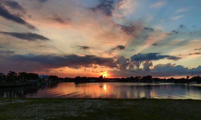 Relax with the whole family (up to 6 people) at this spacious, peaceful, newly redecorated 3 bedrooms, 2 full baths home. It has a fully equipped kitchen, dock, boat lift, large garage and heated pool. Enjoy beautiful water views and sunsets from the backyard, waterfront patio or our local beach park just 3 mins away. If you would like to relax by the water,do some fishing or boating and get some Florida sun this is a perfect home for you.