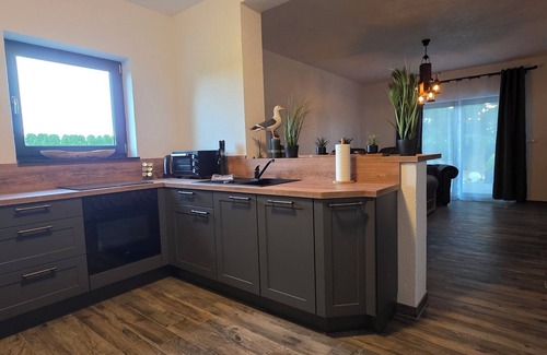 New modern 76m2 vacation apartment at the gateway to the island of Usedom is located in Groß Ernsthof. New modern 76m2 vacation apartment at the gateway to the island of Usedom provides accommodation, featuring Fireplace/Heating, Barbecue/Outdoor Cooking, Kitchen, among other amenities. This Apartment features Fireplace/Heating, Barbecue/Outdoor Cooking, Kitchen, to make your stay a comfortable one.
