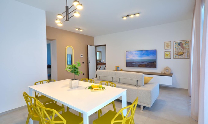 New modern apartment sea and Aeolian Islands view with balcony and terrace is located in Vigliatore. New modern apartment sea and Aeolian Islands view with balcony and terrace provides accommodation, featuring Laundry, Parking, Fireplace/Heating, among other amenities. This Apartment features Laundry, Parking, Fireplace/Heating, to make your stay a comfortable one.