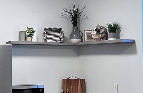 The Basement casita was completed in Aug 2023. With its new construction and modern touches, we wanted nothing less than quality for our guests. This one bedroom one bath casita offers the privacy of your own bedroom. Your stay in the bedroom offers a queen bed with comfy plush linens, walk in closet, iron, ironing board, hangers, and plenty of extra blankets and pillows. Remote controlled ceiling fans in bedroom and living room for a comfortable stay. USB chargers on bedside table lamps.