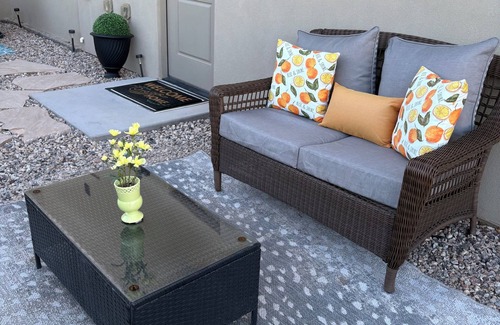 The views of the red mountains and Smiths Mesa just outside your front door are breathtaking. Sit back and settle in, in very own peaceful courtyard, with Seating for all.