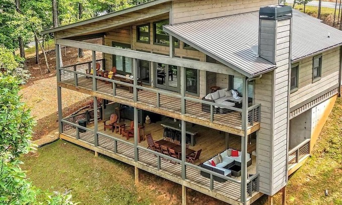 NEW Modern Cabin! 2 Large Decks, Hot Tub, Sleeps 8 is located in Ellijay.