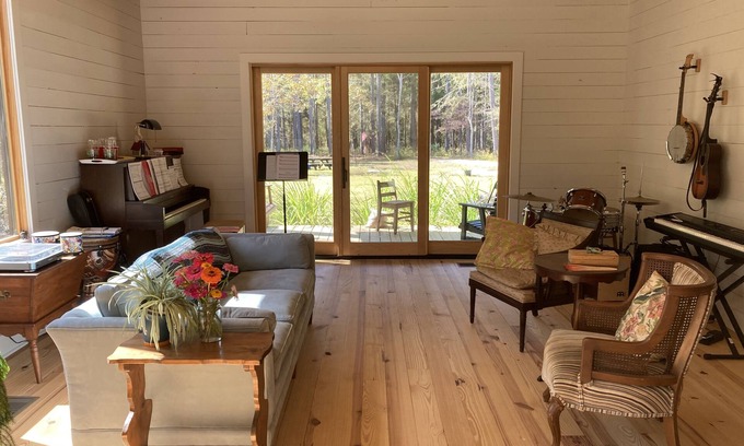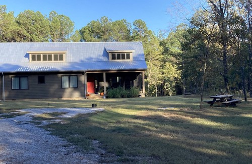 A stay at at this cabin is for enjoying being together and slowing down. The rooms are generously sized so everyone can have their own space or enjoy being together. A new, large kitchen is open to the living and dining rooms. Or, for a more intimate setting try doing a puzzle or picking out a tune in the music room. The house is flooded with light and views to the surrounding forests- great for seeing the sunrise, stargazing, or spotting wildlife. A large front porch and back porch allow enjoyment of the outdoors in comfort. Take a walk in the woods or play one of the many recreational games at the house, such as ping pong, basket ball, pickle ball, badminton, corn hole, or croquet. 12-15 minutes to ole miss and Oxford center.