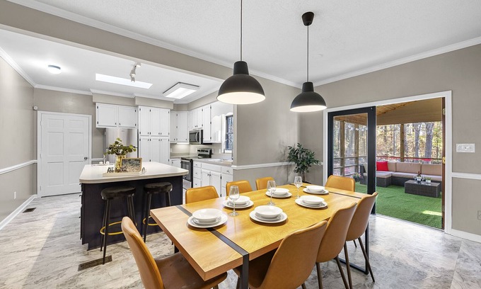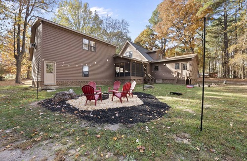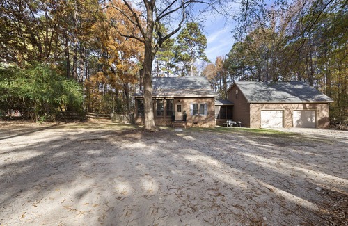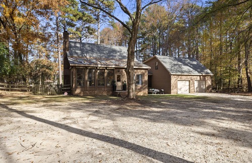Welcome to the 2 Acre, 4 bedroom 2 bath Modern Cabin Oasis in Apex, NC! Nestled among large mature trees, this retreat offers a fire pit, or relax in hammocks or screened porch, embracing the tranquility of nature. This getaway promises a perfect blend of peaceful seclusion and nearby outdoor adventures. Home offers prime convenience, minutes from shopping, dining, and entertainment. A short drive to downtown Raleigh and Research Triangle Park amplifies your stay!