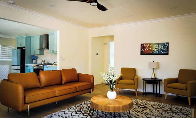Stay comfortably in a stylish centrally-located home 3-bedroom house. Each bedroom features a queen bed, ensuring a good night's sleep for all guests. With 2 bathrooms equipped with amenities like a hair dryer and shower, everyone can freshen up easily. The gorgeous interior of the house creates a soothing and peaceful atmosphere, perfect for unwinding after a day of exploring. A brand new home with a very big yard & central AC is a luxury in the SF Bay Area. Furnished with a mid-century modern vibe that's colorful and classy. Free parking on the property and free street parking. Huge front, side and backyards, and a fully finished basement! Fremont Bart, Kaiser & Washington hospitals, Central Park, Vargas Plateau hikes, Trader Joes, Wholefoods, charming historic Niles district are all within a 2-mile radius. Enjoy your time in Fremont at our house.