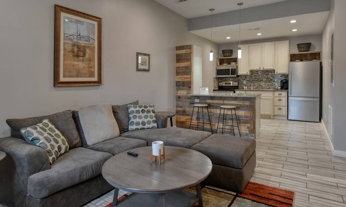 Chic, modern, open floor plan, with plenty of parking. Great for the professional here on business as well as families here for vacation. Five minute walk away from numerous restaurants, grocery stores, downtown Maryville, and our beautiful greenway. Also only a short drive away from the Great Smoky Mountains.