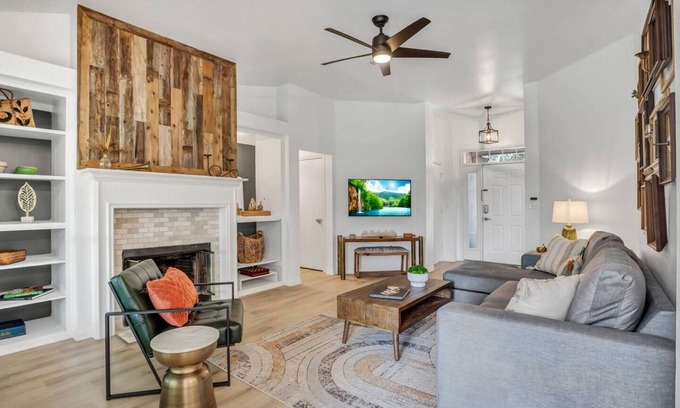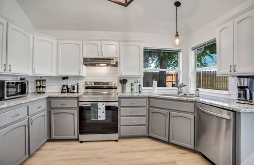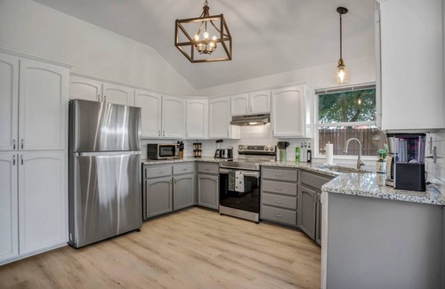 Come unwind at our centrally located Texan home in between Waco & Austin! This house was recently remodeled to feature new flooring and amenities, with designer details for a luxurious yet charming feel. Start your day in the beautiful sunroom w/ a cup of coffee and follow it up with a short drive to Belton Lake. End the day at our quiet home by roasting marshmallows for s'mores at our fire pit. As an added bonus: Luxury Movie Theater, Shops and restaurants are only a 5 min walk away!