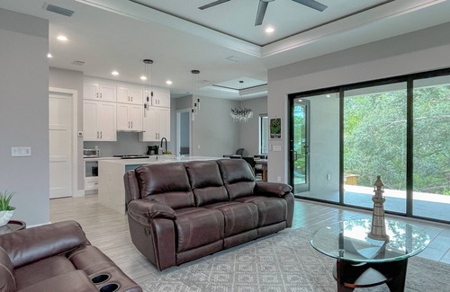 Make yourself at home in this 3-bedroom North Port retreat. Nestled in a quiet street this awesome house features 1 king bed, 1 pack and play, 1 queen bed, 3 twin beds, and 1 full bed. Blow up mattresses available upon request. With 3 bathrooms equipped with a shower, bathtub, and hair dryer, guests will feel nice and comfortable during their stay. This newly built home provides a spacious and fully furnished living environment. Equipped with new appliances and two master bedrooms featuring large bathrooms with dual sinks, this property is perfect for those seeking comfort and relaxation. The home comprises three bedrooms, plus a smaller room ideal for use as an office or play area. Additional features include walk-in closets, a pantry, and private external access to every room. Perfect for extended vacation stays, this residence is within walking distance to Florida's Warm Mineral Lake and offers free private backyard access to the lake's healing mineral waters. Residents can also enjoy the spacious, furnished patio with stunning river and greenery views. Conveniently situated near stores, restaurants, coffee shops, a library and downtown Wellen Park. About 20 min drive to various Florida beaches