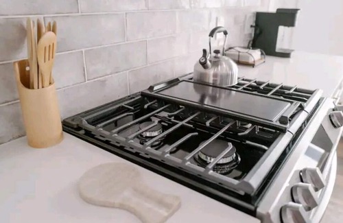 * Full-sized gas range and dishwasher. Plus all the cooking wear you can need