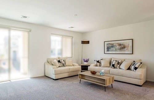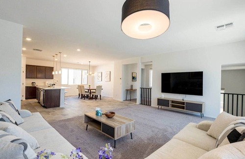 Welcome to our brand-new, stylish 3-story home, perfect for families, groups, or anyone looking to enjoy the excitement of Las Vegas in a spacious, comfortable setting. Located just 17 minutes from the Las Vegas Strip, you'll have easy access to all the entertainment, dining, and nightlife, while enjoying the peace and privacy of a modern, quiet retreat. This contemporary home features 5 beautifully designed bedrooms, 3.5 bathrooms, and can comfortably accommodate up to 12 guests. Modern Stylish house fully furnished with 5 bedrooms 6 beds + sofa bed Modern furnished kitchen with refrigerator, capsule cup of coffee; gas stove, oven, dishwasher and microwave. Full laundry is available. Smart TV with access to all major streaming apps to watch your favorite show. Wi-Fi is also provided onsite. Private two car garage. No Pets Allowed No party allowed Local stores and restaurants are 2-5 mins away. Casinos: The Orleans Hotel & Casino (3 miles) Palms Casino Resort (5 miles) Resorts World (7 miles) Caesar's Palace (7 miles) MGM Grand (6 miles) Wynn (7 miles) Bellagio (7 miles) Shopping: Las Vegas Premium Outlets South (7miles) North Premium Outlets (10 miles) Fashion Show Mall (7 miles) The Forum Shops (7 miles) Miracle Mile Shops (6 miles) The Grand Canal Shoppes (7 miles) Town Square (7.2 miles) Downtown Summerlin (9 miles) Attractions: Red Rock Canyon (13 miles) Shark Reef Aquarium (5 miles) The Big Apple Coaster & Arcade (6 miles) High Roller (7 miles) Convention Center (9 miles) Fremont Street Experience (11 miles) Local Food & Drink: One Piece Cafe (4 miles) Pink Cactus Tea (4 miles) Raku (5 miles) Lotus of Siam (7 miles) Wolfgang Puck's Spago (6 miles) Momofuku Las Vegas (6 miles) Airport: Harry Reid International Airport (9 miles The whole house will be available. An elevated staircase was constructed to provide access to the main entrance. Contact through AirBnb Portal message Self check in with smart lock If you want early check-in or late check-out, please feel free to reach out 48 hours prior to your arrival date. Availability is dependent on prior or next guests. Unapproved late check-out is subject to $75 service charge. Any type of Smoking or vaping inside the property is strictly prohibited. WEED SMOKING IS STRICTLY PROHIBITED ON THE PREMISES INDOOR AND OUTDOOR including patio and backyard. The smell is disturbing and please do not book if you are weed smokers. Any residual substance from smoking or vaping inside the house will be subject to a fine or $450 to cover the additional cleaning costs. The community has strict noise ordinances. Please observe the quiet hours to respect the neighbors, quiet hour rules from 10pm to 7am. We DO NOT allow parties or any unauthorized guests without prior permission of the hosts. If you ignore the local laws, house rules, or violate Airbnb policy, we will cancel the remainder of your stay and you will be asked to leave immediately without a refund. Any fines due to violation of local noise ordinances will be the responsibility of the guest. Missing or damaged items - Any evidence of willful or negligent loss or damage to the property, furnishings, decoration, landscaping, towels, linens or other items will be charged at direct replacement cost plus a fine of up to $200. Towels and linens - Guests are required to keep towels and linens in good condition. Towels and washcloths should not be used to remove makeup or for cleaning purposes. Any permanent stains on towels or linens will fall into the category of negligent damage. Each damaged towel will be charged $50, damage linens will be charged $100.Guests should NOT wash comforters or duvet comforters themselves as this can cause damage to those items and the washing machine. House Rules - Any evidence of a guest breaking posted house rules, including exceeding the occupancy listed by the guest on the reservation, parking restrictions, illegal substances or use of the property can result in a fine of up to $1000.00 and / or eviction from the property. SECURITY CAMERAS ON SITE: *There is a video camera on door bell, top of garage driveway and backyard. Camera always recording for security reasons. We do have access to the videos in case there are discrepancies with number of guests, pets, etc. This property is professionally cleaned and fully sanitized serviced for every guest who books with Us! The home will always be stocked with bath towels, body wash, shampoo, and conditioner. If you need anything additional during your stay, please feel free to reach out!