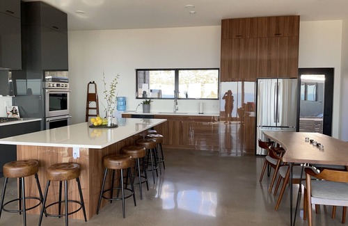 This stylish place to stay is perfect for group trips or the memorable family vacation you will tell all your friends about. The house sleeps eight comfortably with three spacious bedrooms with four queen-sized beds and two spa-like bathrooms. Ocean views as far as the eye can see. Impeccable chef’s kitchen with every modern amenity - gas cooktop, double convection wall oven, refrigerator with ice maker, coffee bar with Nespresso machine and aerocino, two mini fridges to hold all beverages, large island for entertaining and full dining for 8. Air conditioning throughout with polished concrete floors. Year-round hot tub with ocean views and two large covered decks for outdoor living. Sunsets so amazing that pictures don’t do them justice.