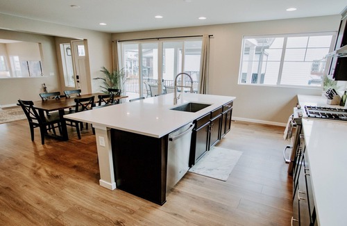 Experience sophistication and comfort in our stylish 3-bed, 3-bath oasis with a sleek kitchen, elegant living spaces, and a dedicated office. Abundant natural light fills each room. Two covered decks invite outdoor dining and relaxation. Nestled in the heart of Stepping Stone, it's the ideal mid-term 30+ day stay. Book now for a world of modern living!