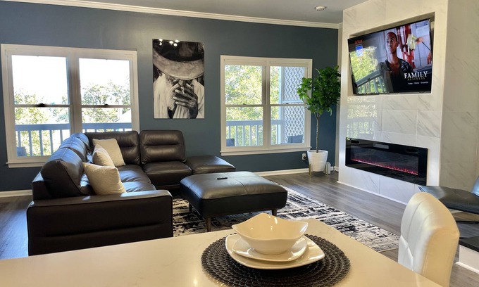 Welcome to our stunning 4 beds, 3.5 bath with Gameroom access. This is the perfect Home to relax, kick back & enjoy your vacation. The whole group will enjoy easy access to everything Macon has to offer. This centrally located home offers free parking on the premises. The home is more beautiful in person. The open floor plan allows everyone to be together, whether you are hanging out watching TV or cooking up some delicious meals. Come enjoy family gatherings at our spacious downtown hidden gem