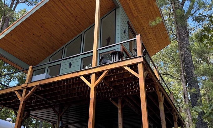 This newly constructed treehouse cabin sits at the end of a remote tree lined drive on our property. Lake access for kayaking and swimming is available at nearby Kerley Point (.2 miles away).
