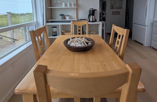 Welcome to The Pelican House - a new oceanfront vacation rental home. The Pelican House offers a unique opportunity for a single person, couple or small family or group of friends to enjoy an oceanfront vacation without having to rent a larger home at a much greater expense. The home has just undergone a top to bottom remodel. If you are looking for an oceanfront stay that checks all the boxes, this may very well be the home for you - fantastic ocean and sunset views - easy access private beach path - dog friendly with large enclosed yard - covered front porch with Weber gas grill and seating area - large oceanside deck - nice open floor plan with ocean views from every room - 55 inch tv - Xfinity internet - air conditioning - soothing electric fireplace - one level home. Everything is NEW - appliances, flooring, decking, paint, pots/pans and all kitchen gadgets, mattresses and bed and bath linens.