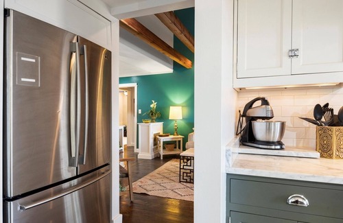 Welcome to The Peach Bluff house! This home is located right ON the bluff of Lookout Mountain and has a coastal and eclectic vibe, while boasting fantastic views from both double-decker back decks and the hot tub! You will enjoy every uniquely decorated space within these 3 Bedroom 2 Bathroom home! Our Peach Bluff home comfortably sleeps 6 guests and offers two screened in front porches both with comfortable. We would love to host you at our Peach Bluff vacation rental! Our Favorite Things About This Home: There is so much to love about the Peach Bluff House! From its colorful décor, the amazing hand-painted peach mural, the sun-soaked living spaces…you will find yourself enjoying the relaxing nature of this home. You’ll want to spend your time outdoors with a cup of coffee in hand while you take in the phenomenal views. This home is conveniently located near many popular attractions including Lula Lake Land Trust and Rock City Gardens! Home Layout: Upon entering the property, you will be pleased to find an adorable screened in front porch with ample seating. The entryway welcomes you into a spacious and colorful living area with gorgeous wooden ceiling beams and a large smart TV. Access the kitchen, which showcases gorgeous bay windows, a large kitchen table, and a comfortable window seat. The kitchen is fully stocked with all your cooking essentials and appliances, as well as a drip coffee pot and a starter amount of ground medium roast coffee. Now for the bedrooms! The master bedroom has a King bed, a smart TV, and a spacious master bathroom with a soaker tub and a standing shower. The second spacious bedroom has a Full bed and the third bedroom has a Twin trundle bed combo. Access the top deck from the kitchen to enjoy your morning coffee and take in the views and use the stairs to make your way down to more cozy outdoor seating and the luxurious 3 person hot tub which also showcases incredible views! Things to Know About This Property: MAX amount of parking is for 3 vehicles NO pets are allowed on this property Max Occupancy is 6. You will need to bring your own towels or the hot tub. Although this home is single level, there is one step in the home. The grill on the property is a charcoal grill Smart TVs in the living room and master bedroom Sound machines are available for use in every room Washer/Dryer & Central AC available Distance to Local Attractions: Lula Lake Land Trust 3.8 Miles Rock City Gardens 6.8 Miles Fairyland Caverns 6.8 Miles See Seven States 6.9 Miles Sitton's Gulch Trailhead 6.9 Miles Downtown Chattanooga 12.9 Miles Downtown Chickamauga 14 Miles Topgolf 20.5 Miles