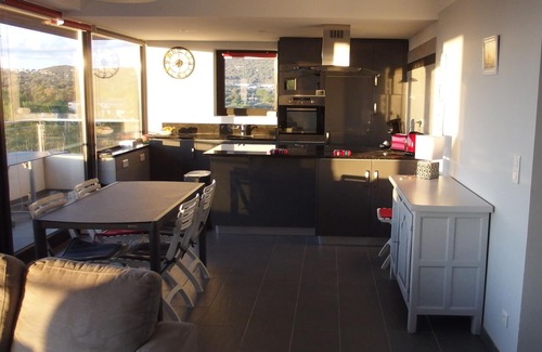 This bright & spacious penthouse is new to HomeAway Group in the spring of 2019. It offers stunning views on the Mediterranean Sea and the Corsican highest mountains. The two sun terraces (one in an Easterly direction and the other in a Westerly direction) are truly great spots with superb views. They have both a table and chairs for outside entertaining whether over a drink or to dine.
